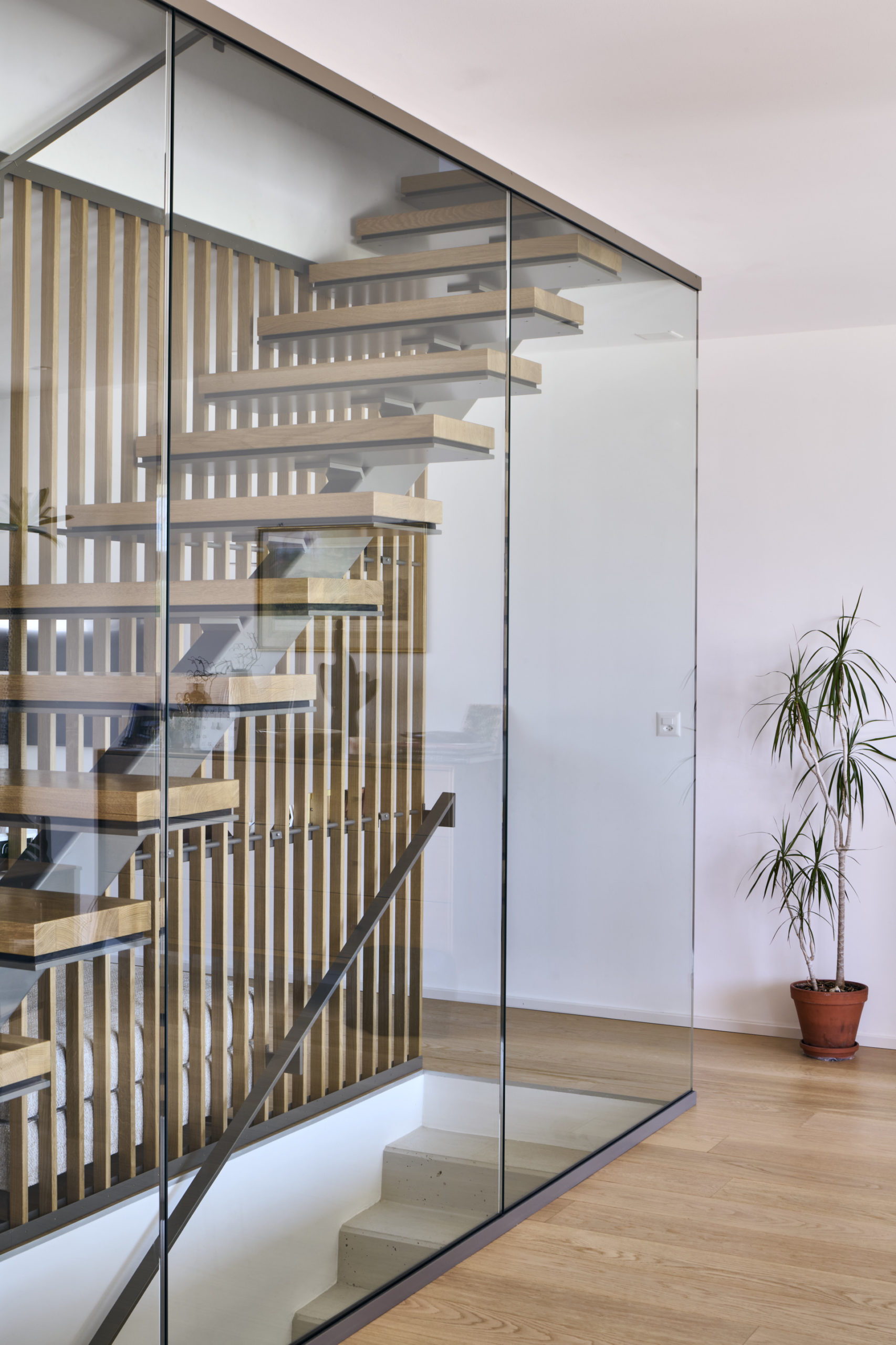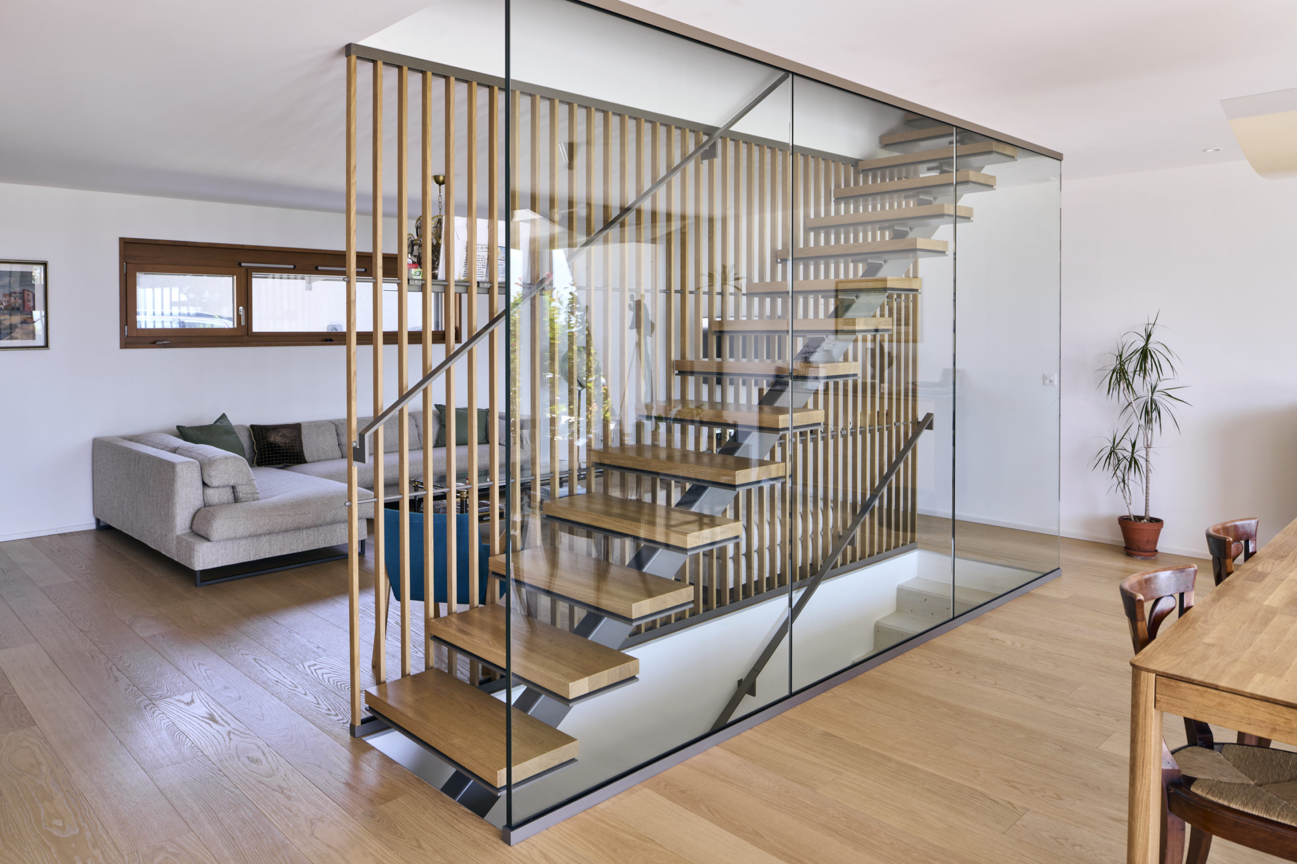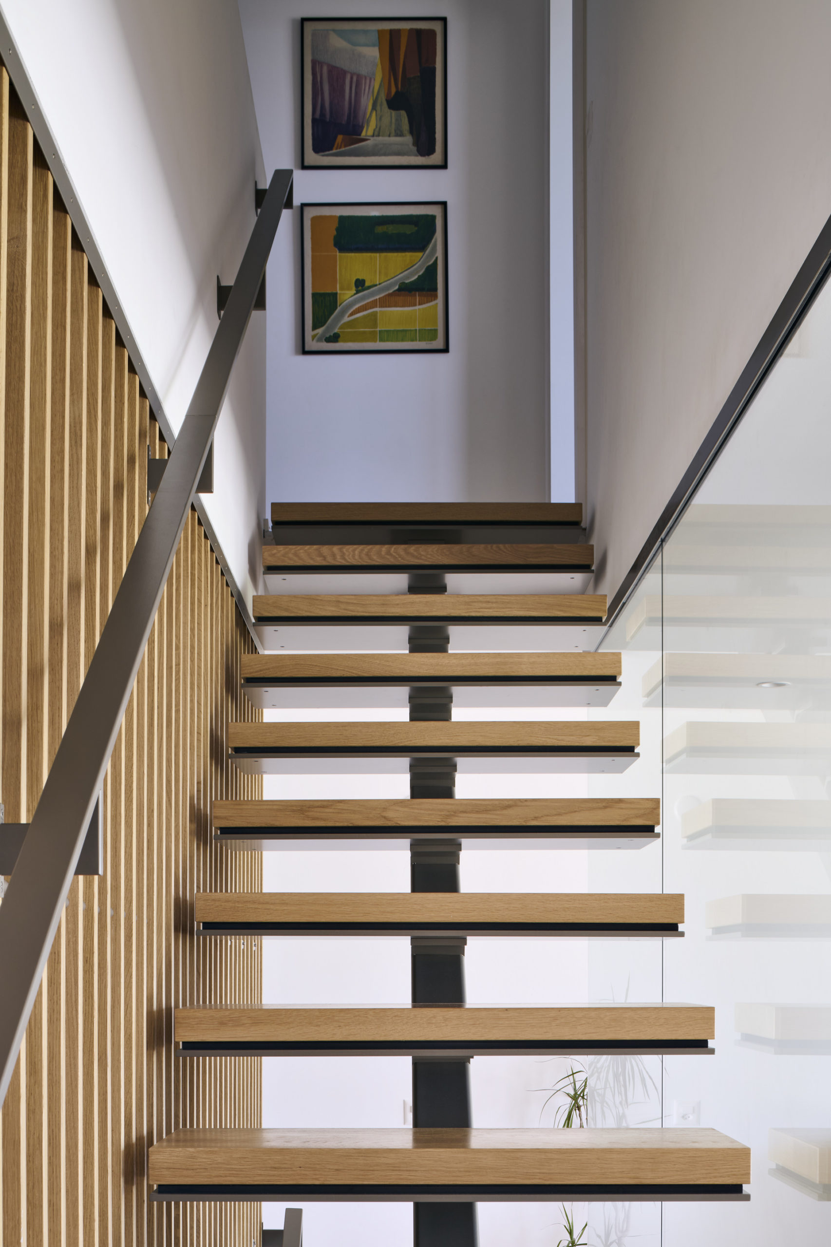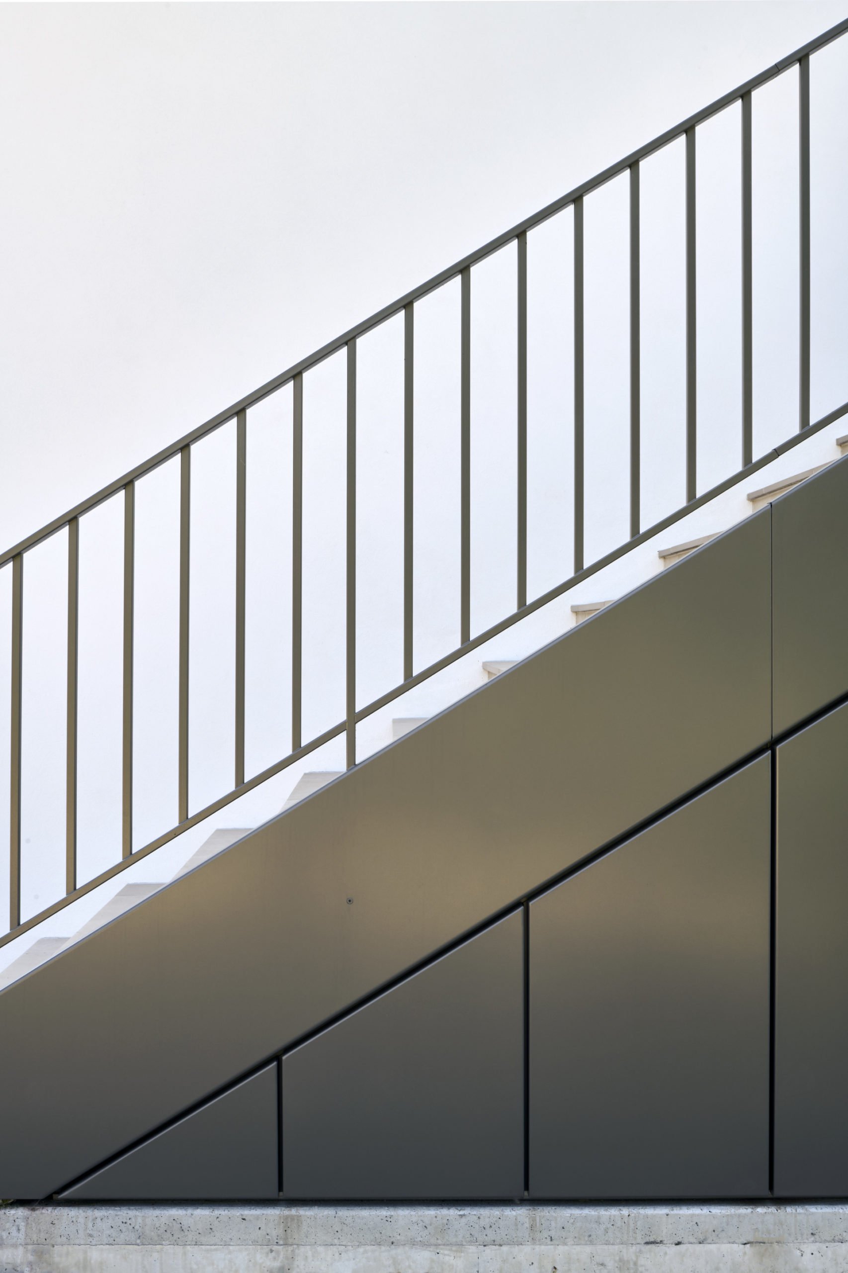 Les balcons sont accessibles directement depuis l’extérieur, par un escalier intégré à la composition de façade, qui confère à chaque niveau une autonomie et une lecture verticale claire.